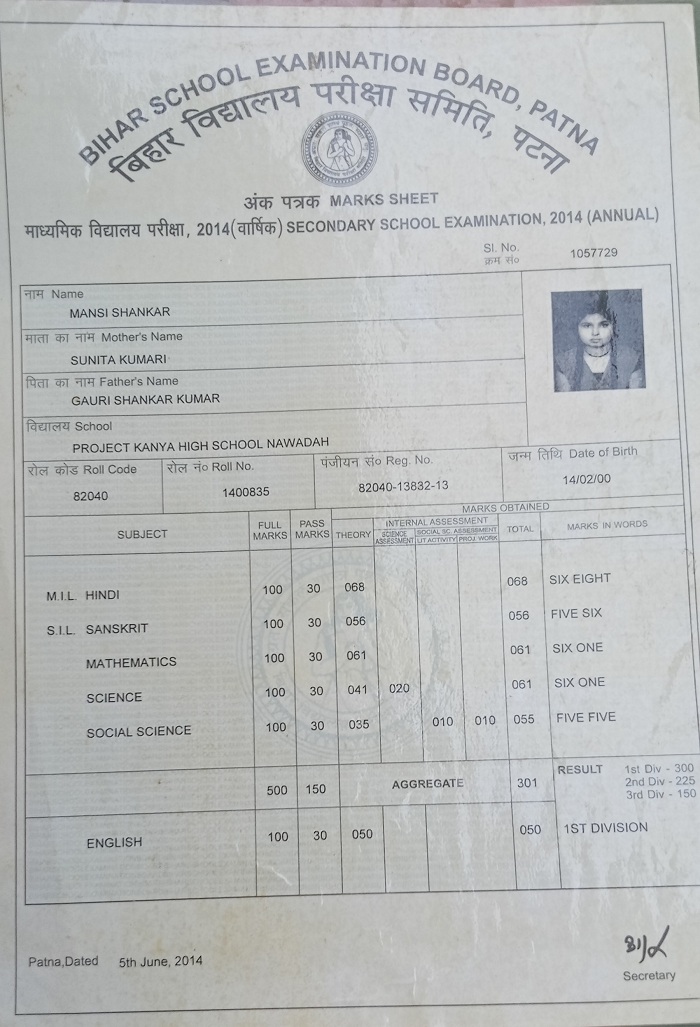 | Exam | Full Marks | Pass Marks | Marks Obtained |