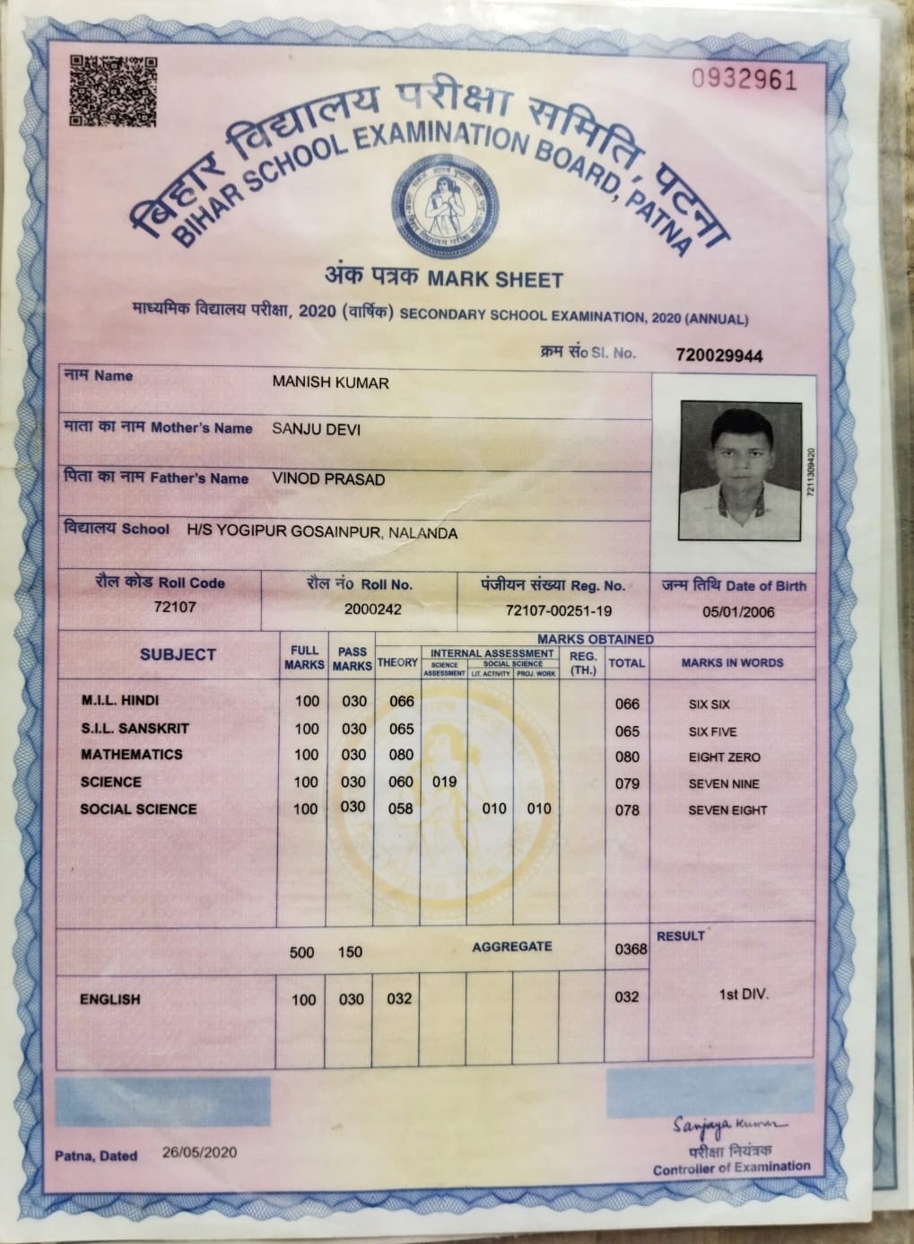 | Exam | Full Marks | Pass Marks | Marks Obtained |