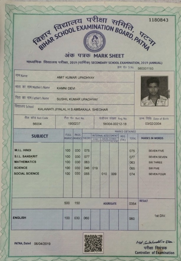 | Exam | Full Marks | Pass Marks | Marks Obtained |