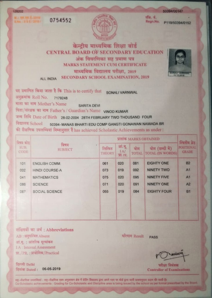 | Exam | Full Marks | Pass Marks | Marks Obtained |