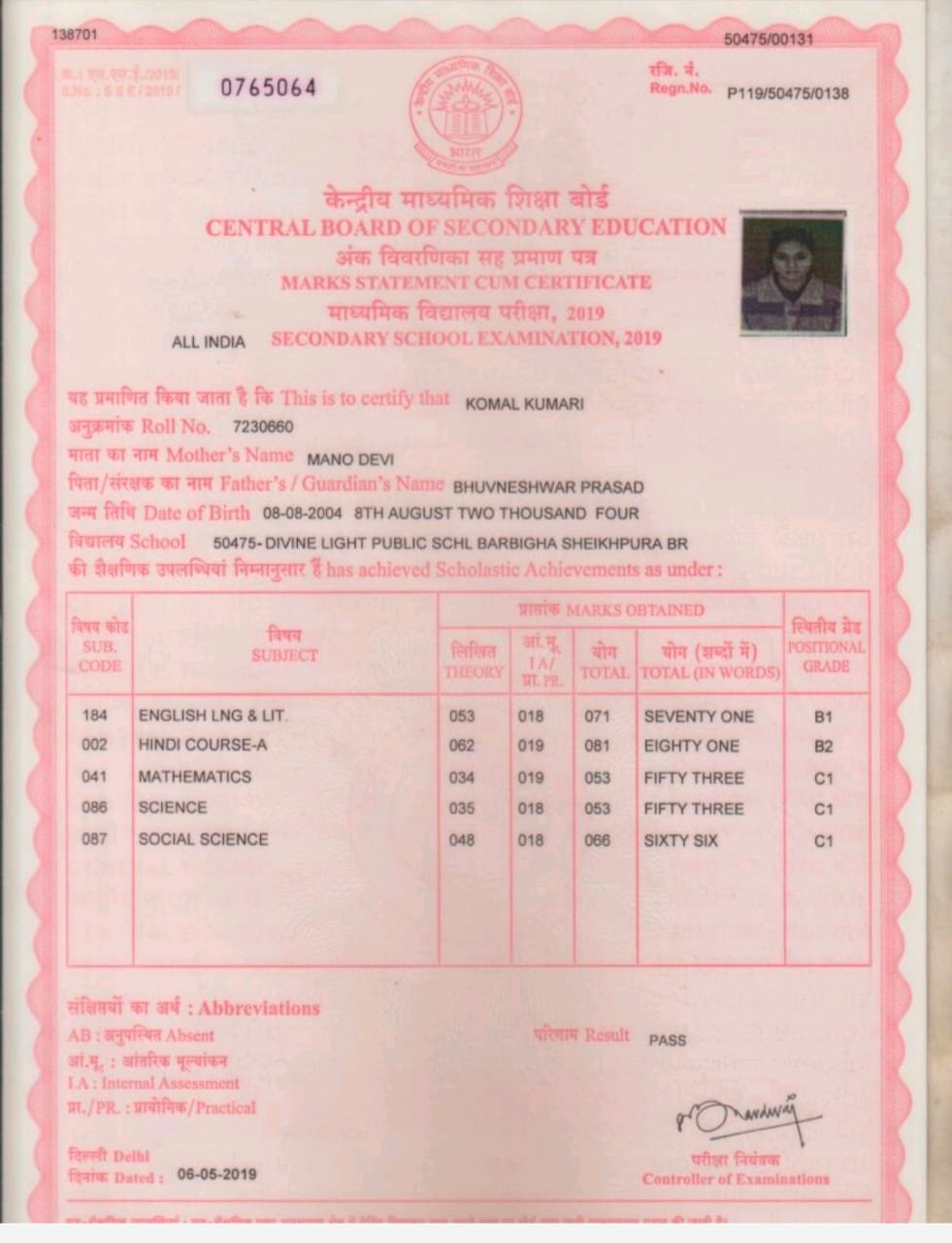 | Exam | Full Marks | Pass Marks | Marks Obtained |