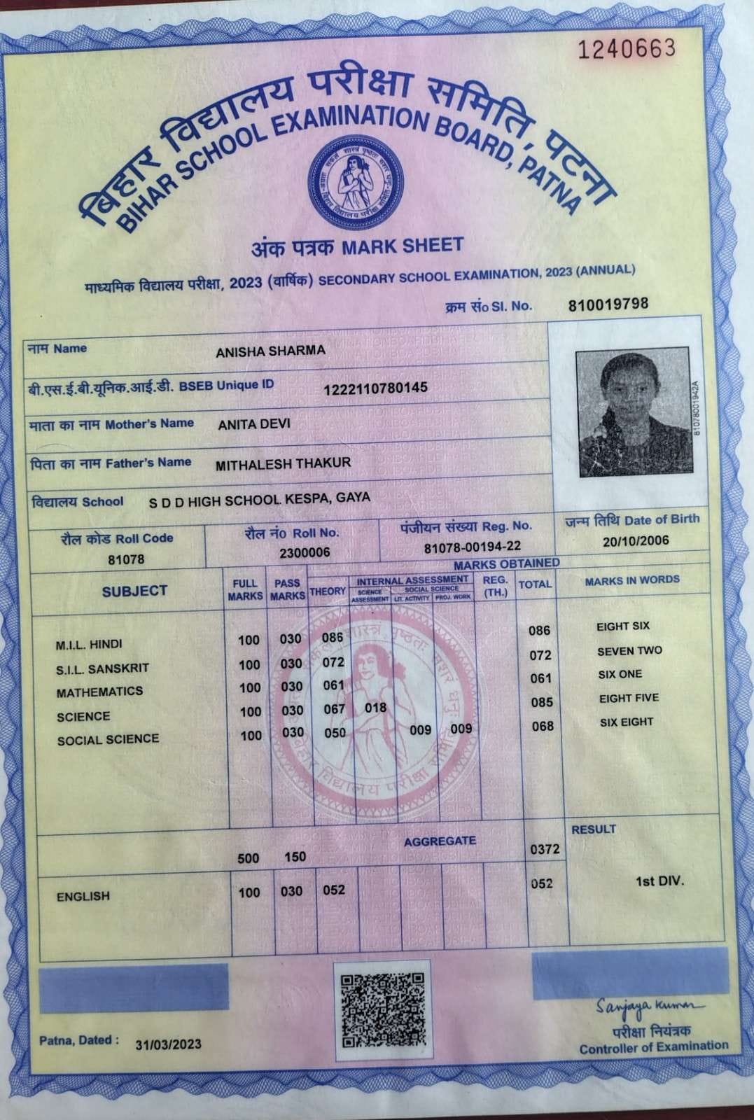 | Exam | Full Marks | Pass Marks | Marks Obtained |