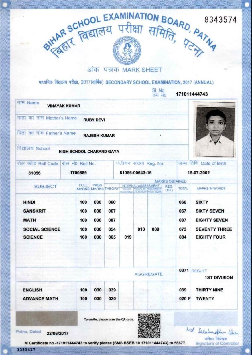 | Exam | Full Marks | Pass Marks | Marks Obtained |