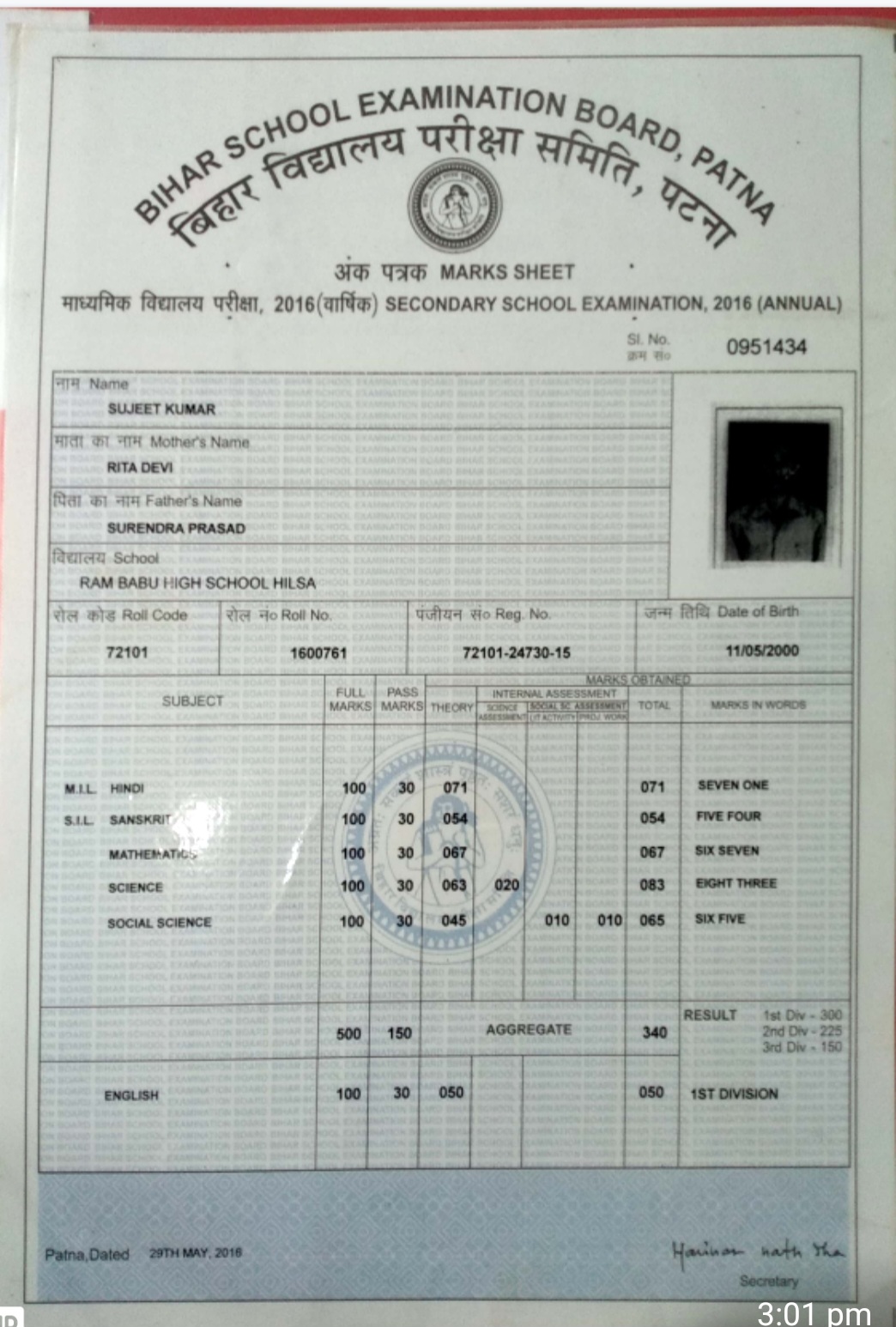 | Exam | Full Marks | Pass Marks | Marks Obtained |