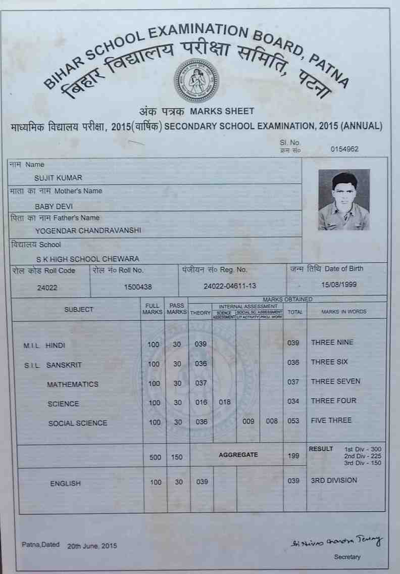 | Exam | Full Marks | Pass Marks | Marks Obtained |