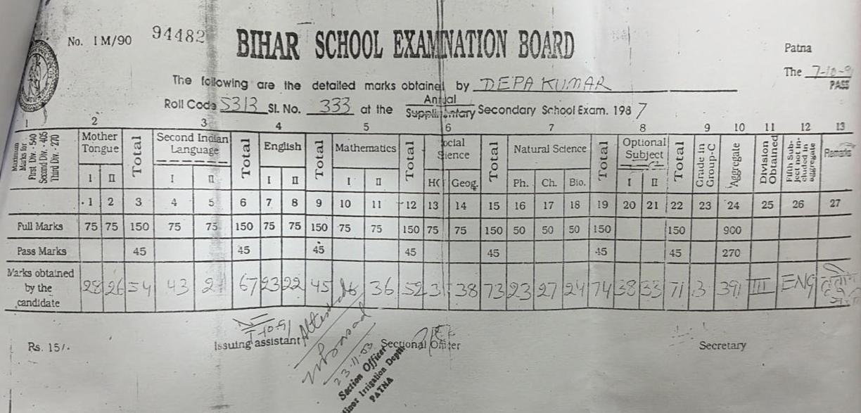| Exam | Full Marks | Pass Marks | Marks Obtained |