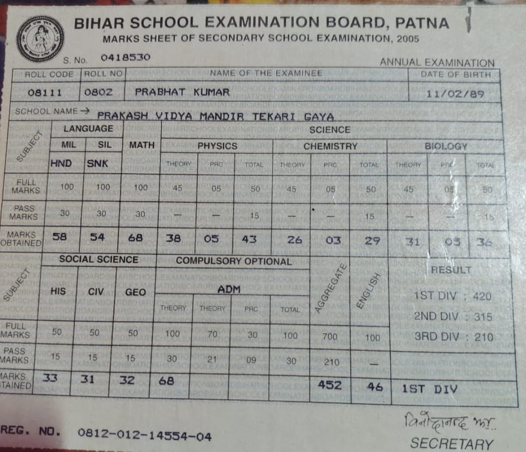 | Exam | Full Marks | Pass Marks | Marks Obtained |