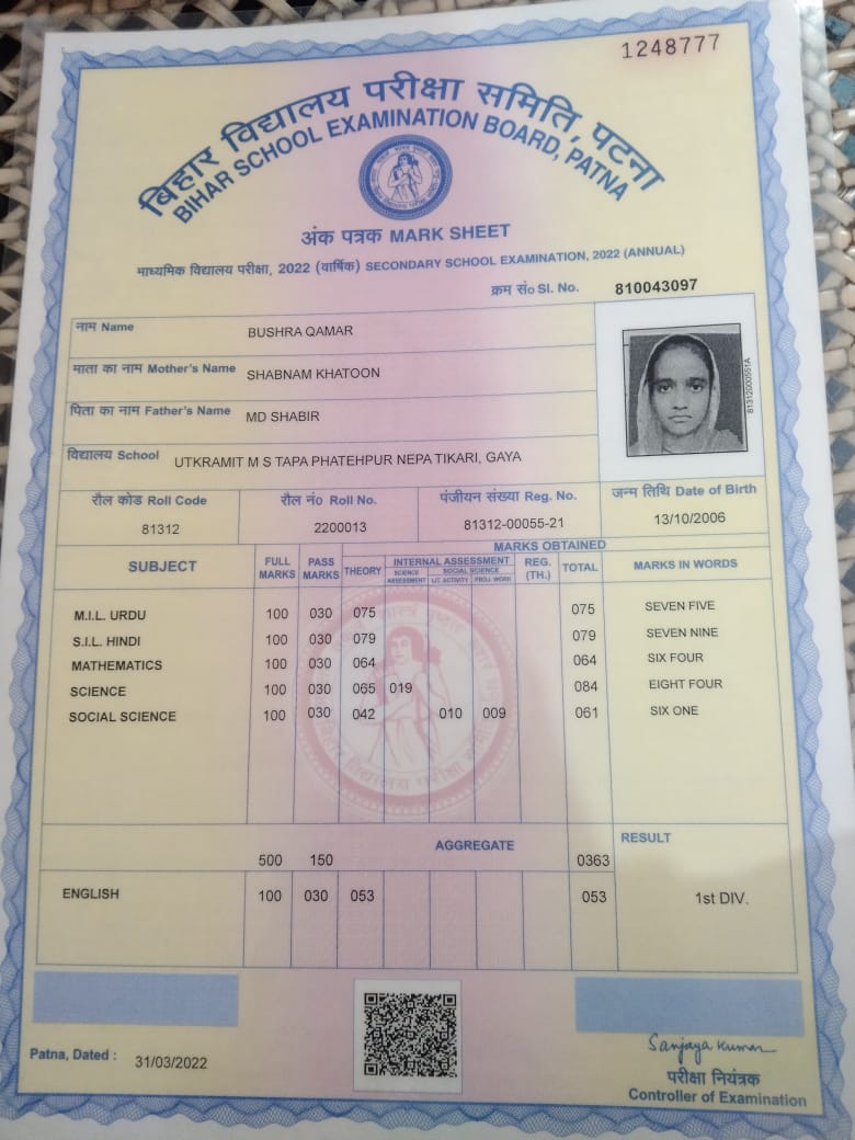 | Exam | Full Marks | Pass Marks | Marks Obtained |