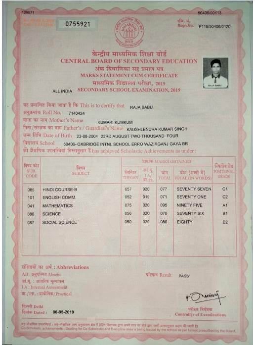 | Exam | Full Marks | Pass Marks | Marks Obtained |