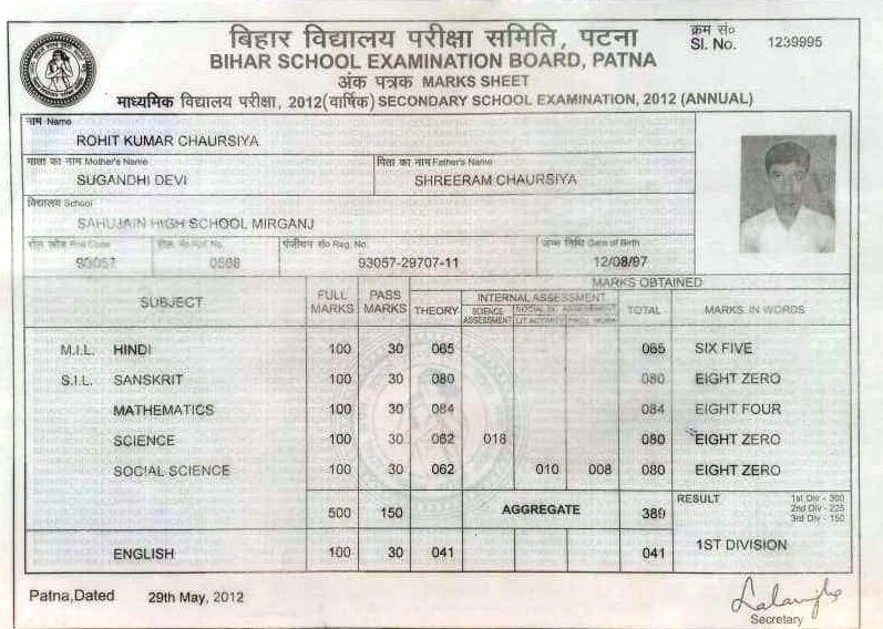 | Exam | Full Marks | Pass Marks | Marks Obtained |