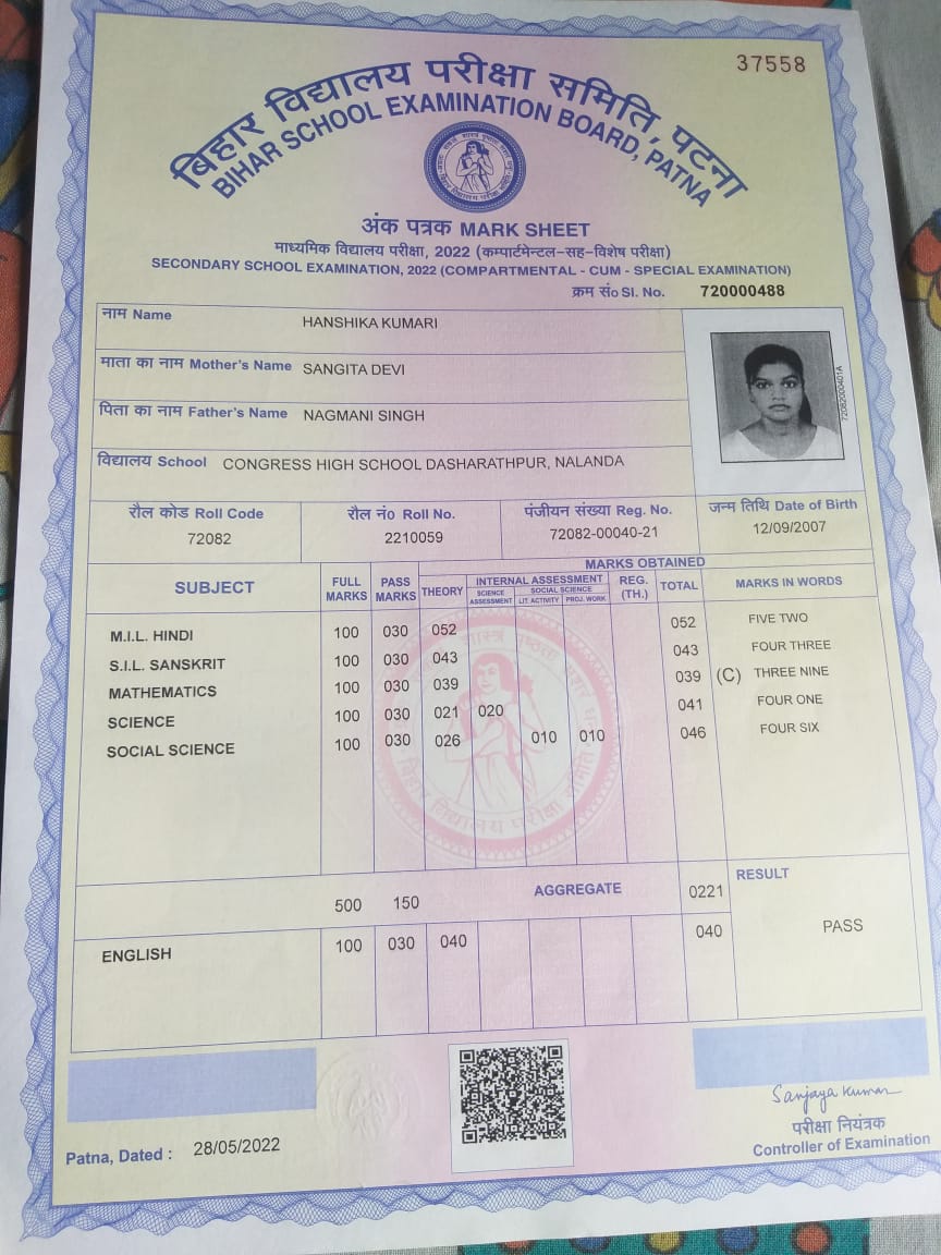 | Exam | Full Marks | Pass Marks | Marks Obtained |