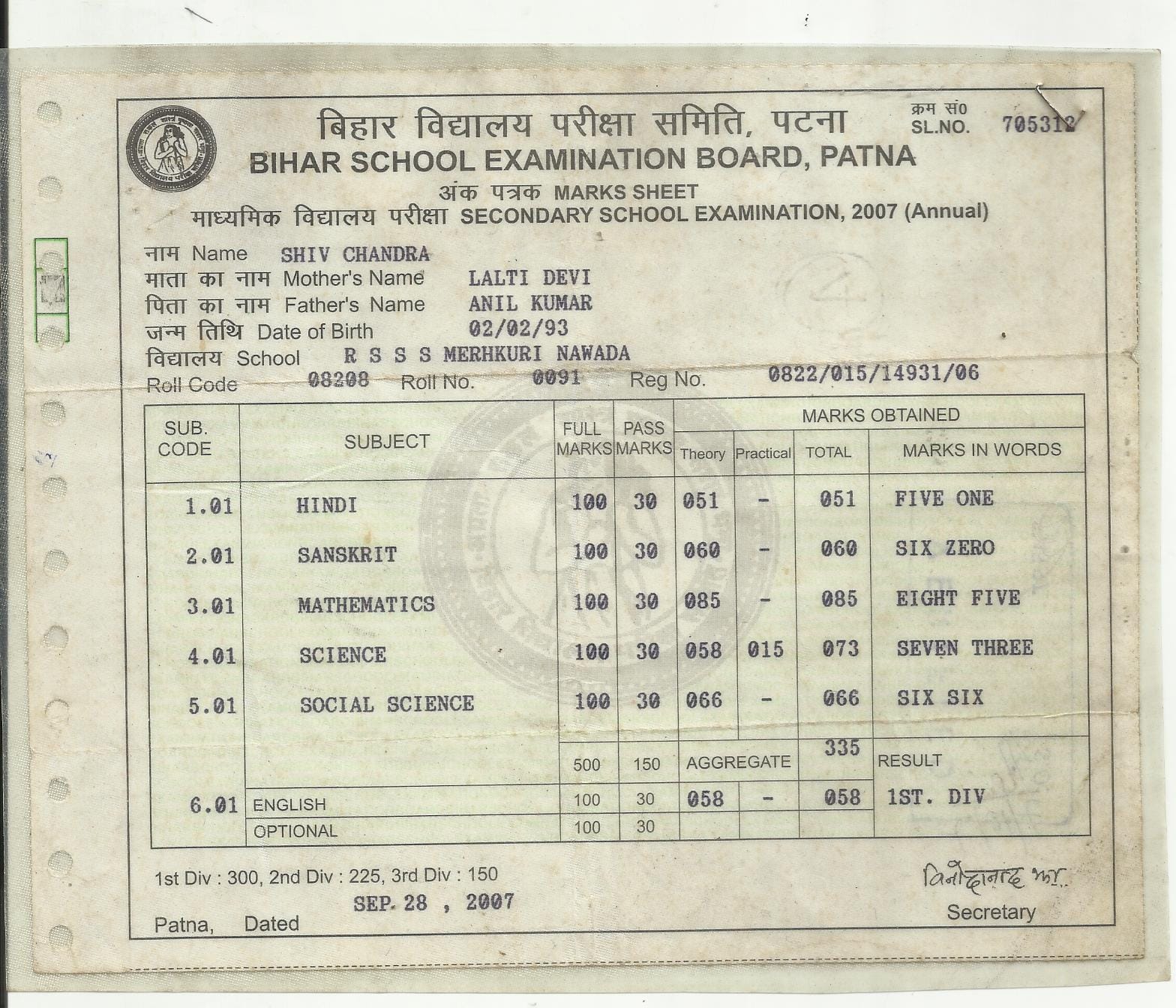 | Exam | Full Marks | Pass Marks | Marks Obtained |