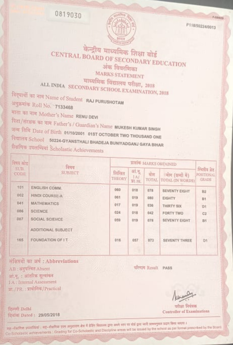 | Exam | Full Marks | Pass Marks | Marks Obtained |