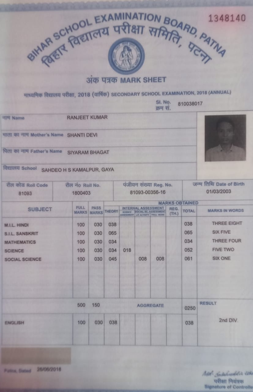 | Exam | Full Marks | Pass Marks | Marks Obtained |