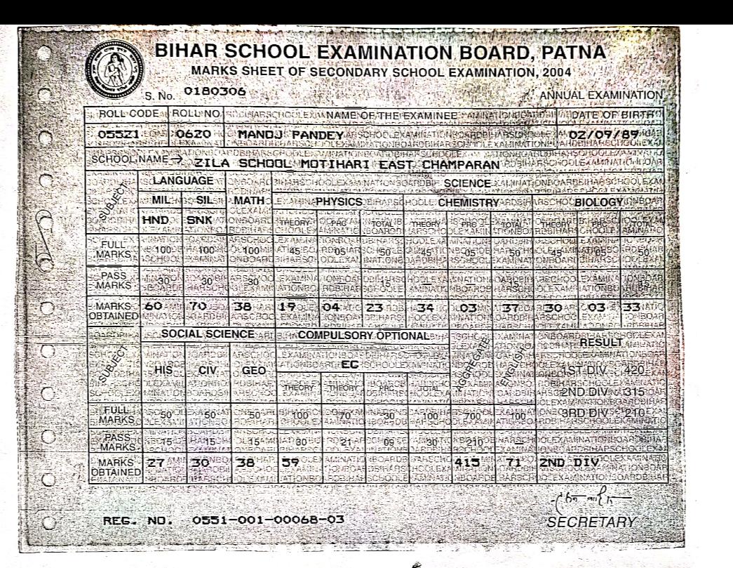 | Exam | Full Marks | Pass Marks | Marks Obtained |