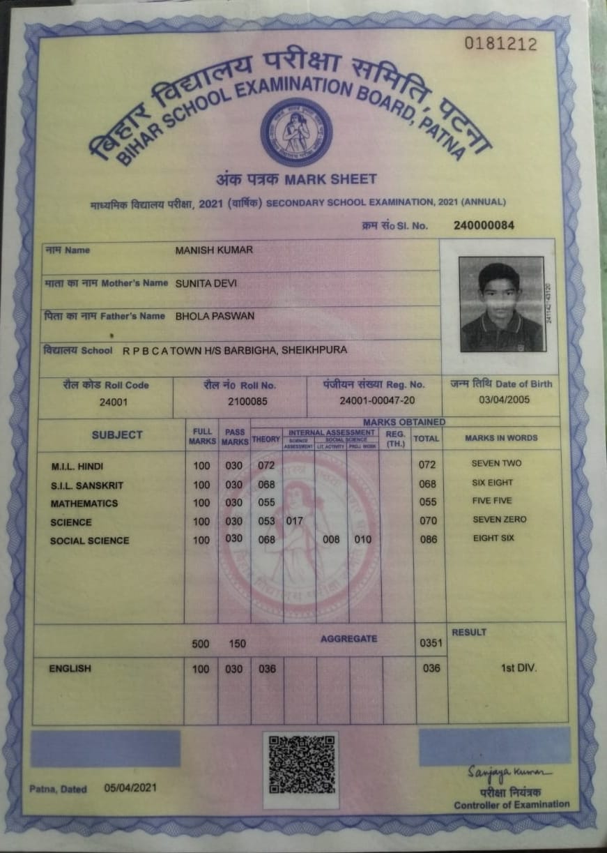 | Exam | Full Marks | Pass Marks | Marks Obtained |