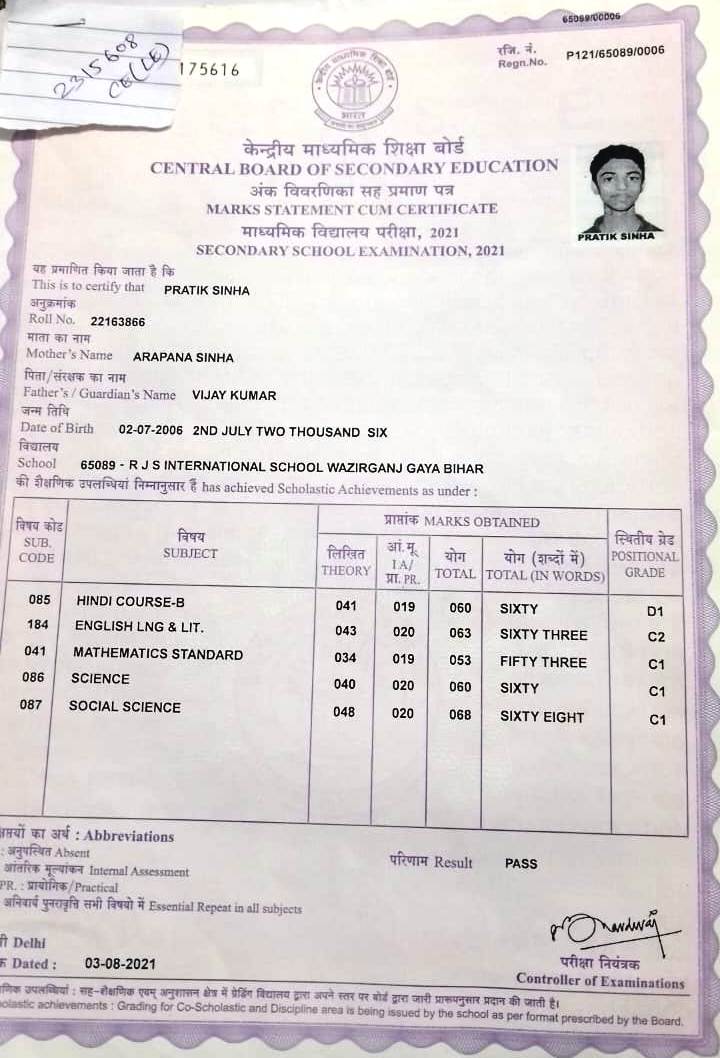 | Exam | Full Marks | Pass Marks | Marks Obtained |