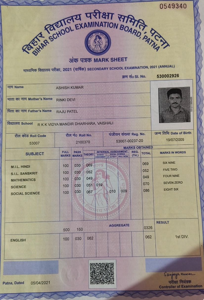 | Exam | Full Marks | Pass Marks | Marks Obtained |