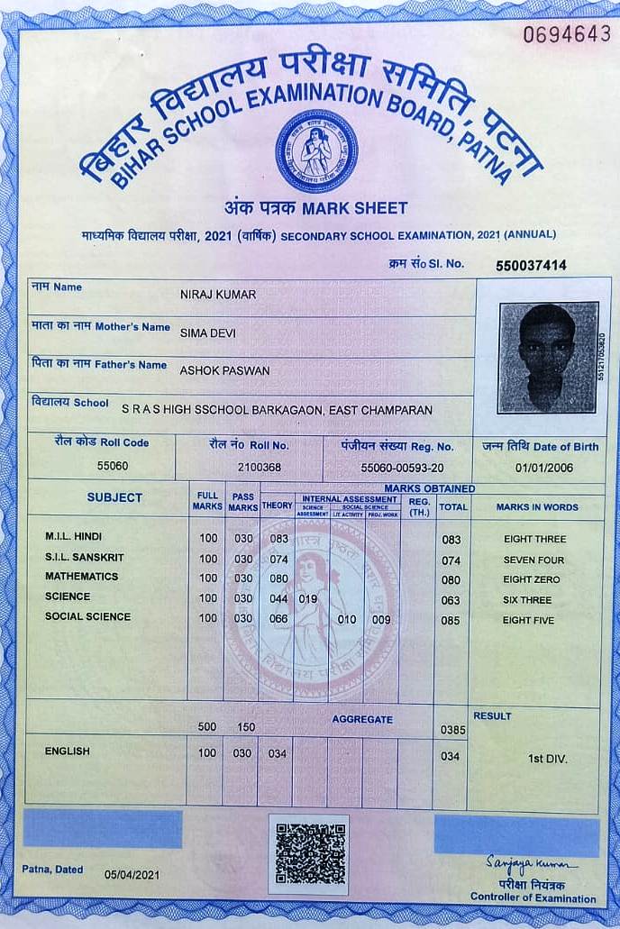 | Exam | Full Marks | Pass Marks | Marks Obtained |