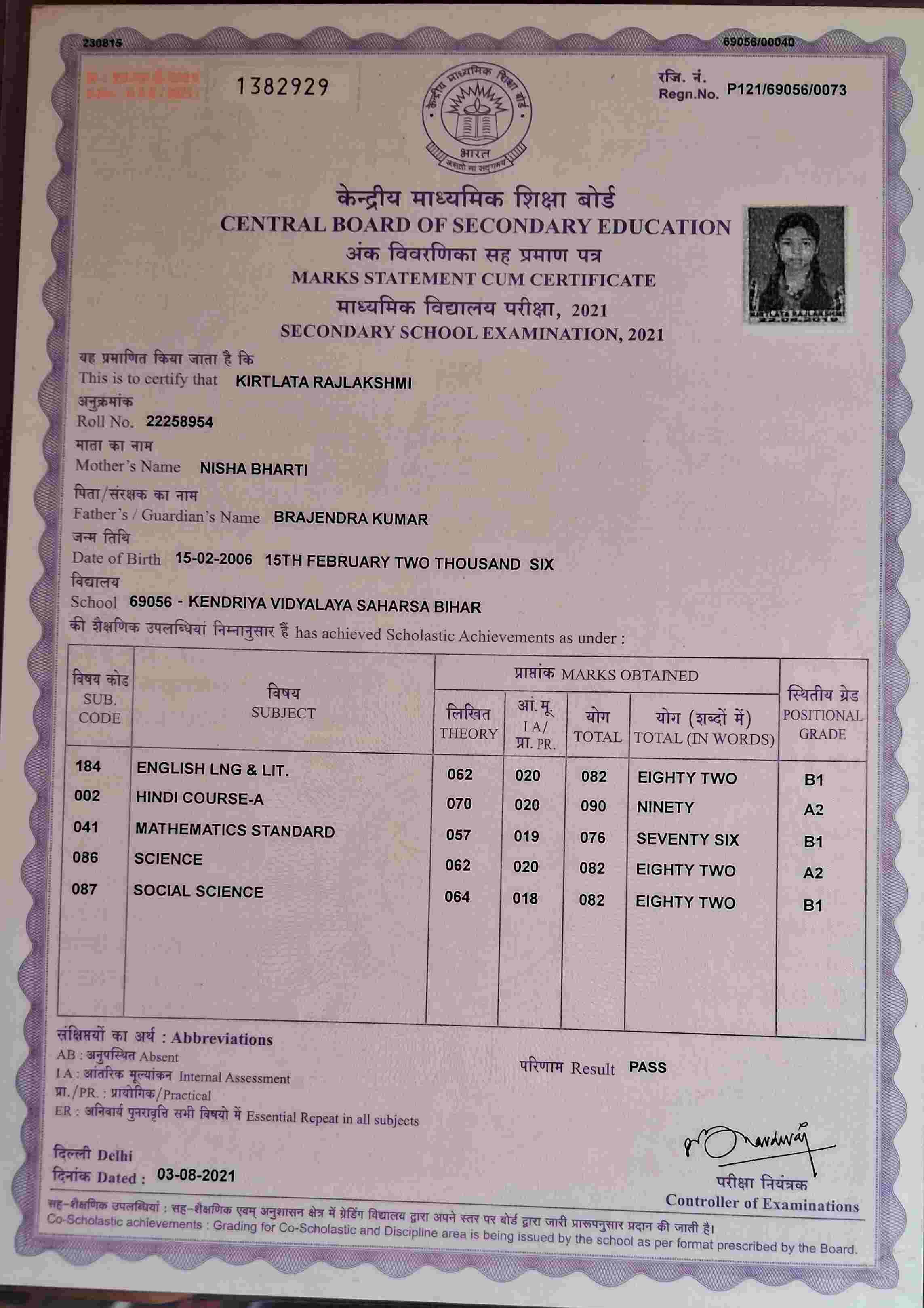 | Exam | Full Marks | Pass Marks | Marks Obtained |