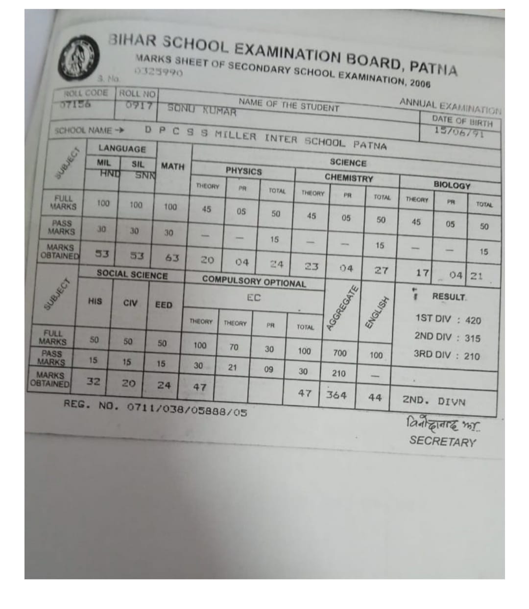 | Exam | Full Marks | Pass Marks | Marks Obtained |