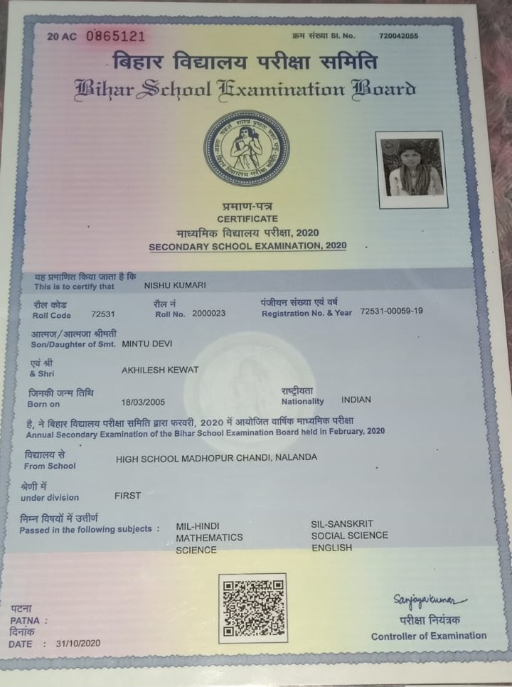 | Exam | Full Marks | Pass Marks | Marks Obtained |