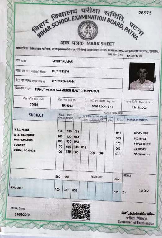 | Exam | Full Marks | Pass Marks | Marks Obtained |