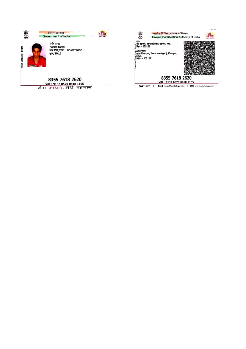 | : | BHADEJA MANPUR GAYA BIHAR 823003, Gaya | |