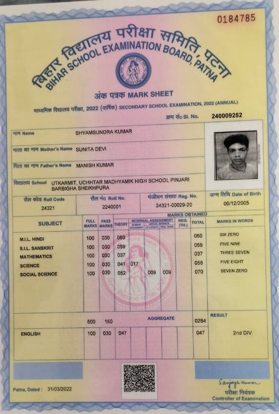 | Exam | Full Marks | Pass Marks | Marks Obtained |