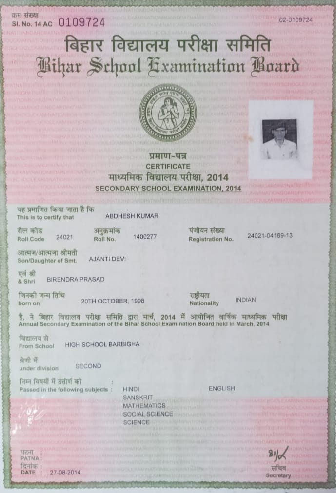 | Exam | Full Marks | Pass Marks | Marks Obtained |