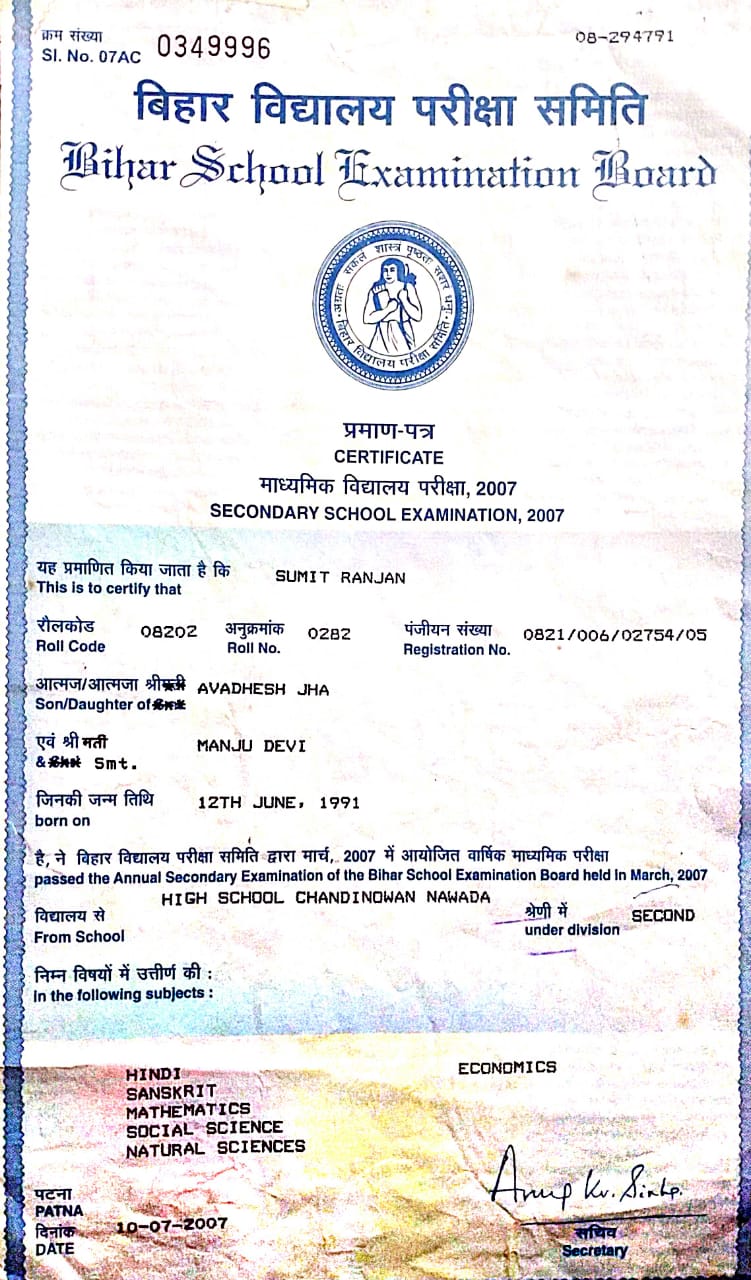 | Exam | Full Marks | Pass Marks | Marks Obtained |