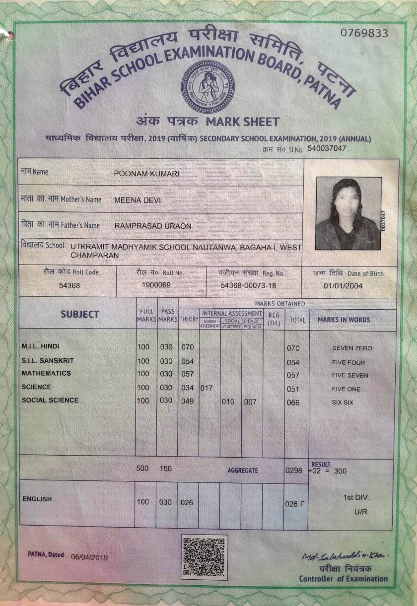 | Exam | Full Marks | Pass Marks | Marks Obtained |