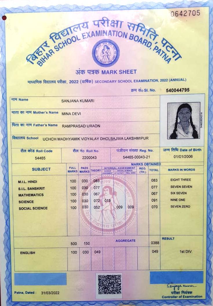 | Exam | Full Marks | Pass Marks | Marks Obtained |