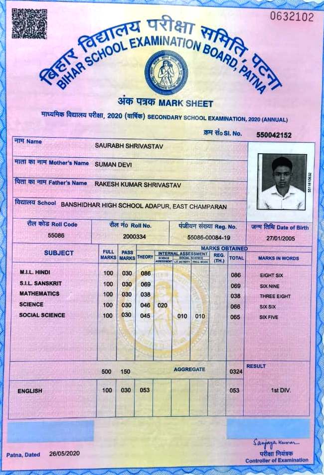 | Exam | Full Marks | Pass Marks | Marks Obtained |