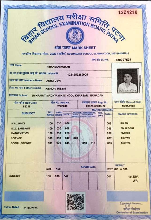 | Exam | Full Marks | Pass Marks | Marks Obtained |