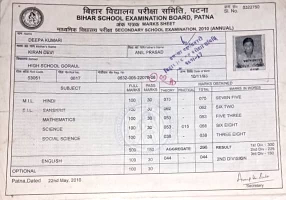 | Exam | Full Marks | Pass Marks | Marks Obtained |