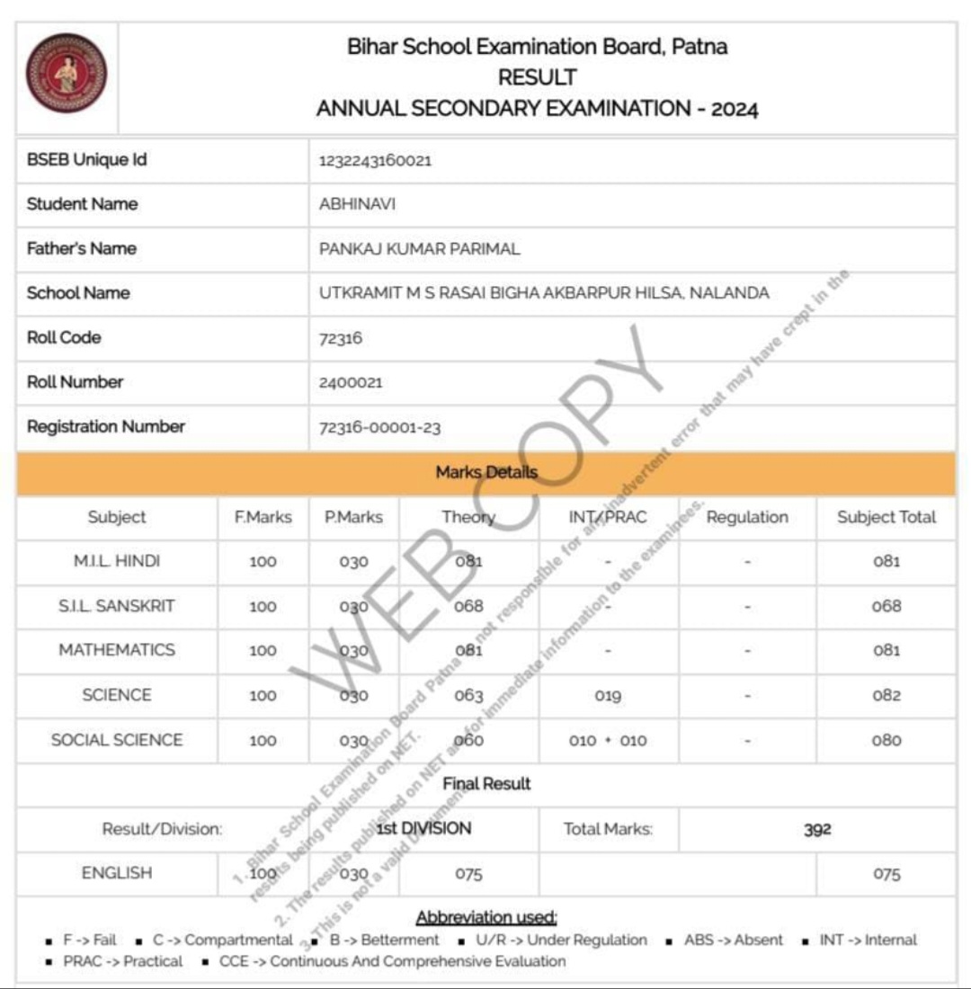 | Exam | Full Marks | Pass Marks | Marks Obtained |