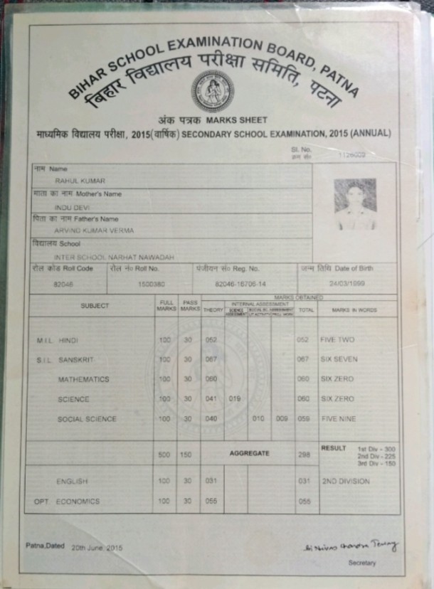 | Exam | Full Marks | Pass Marks | Marks Obtained |