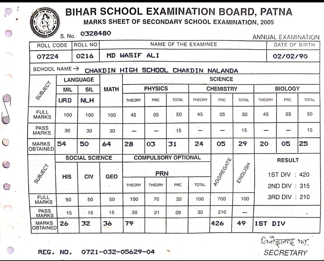 | Exam | Full Marks | Pass Marks | Marks Obtained |