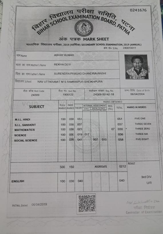 | Exam | Full Marks | Pass Marks | Marks Obtained |
