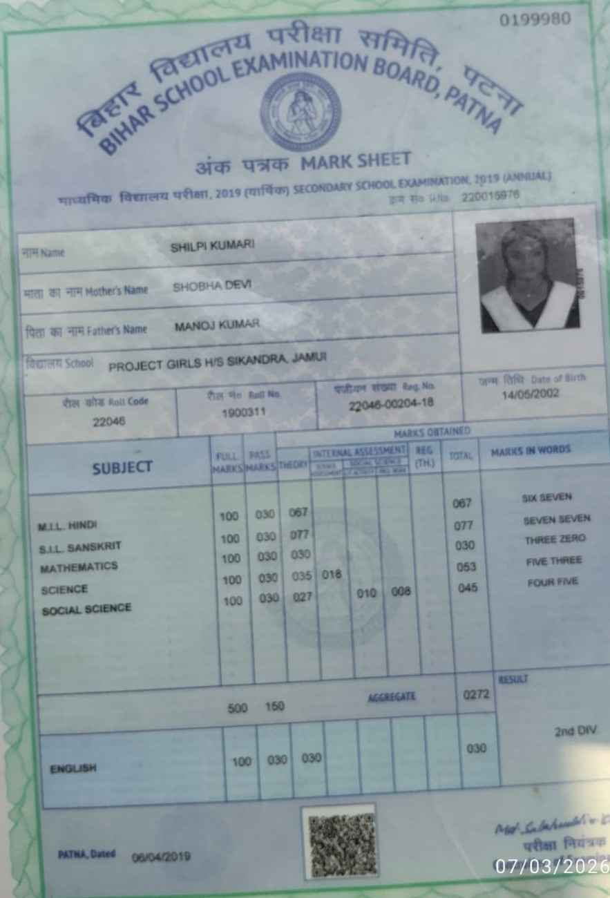 | : | AT-SIKANDRA PO-SIKANDRA DIST-JAMUI STATE-BIHAR PIN-811315, Jamui | |