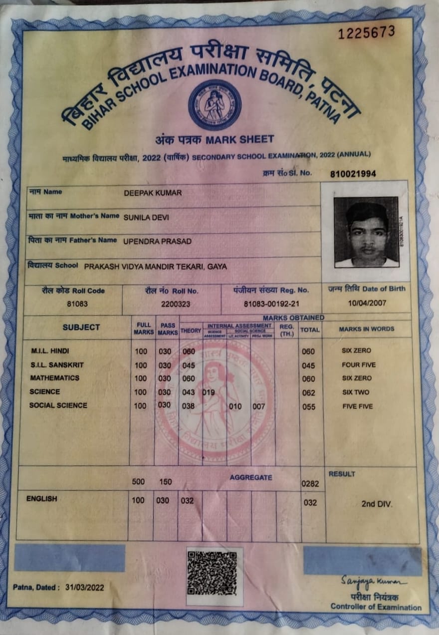 | Exam | Full Marks | Pass Marks | Marks Obtained |