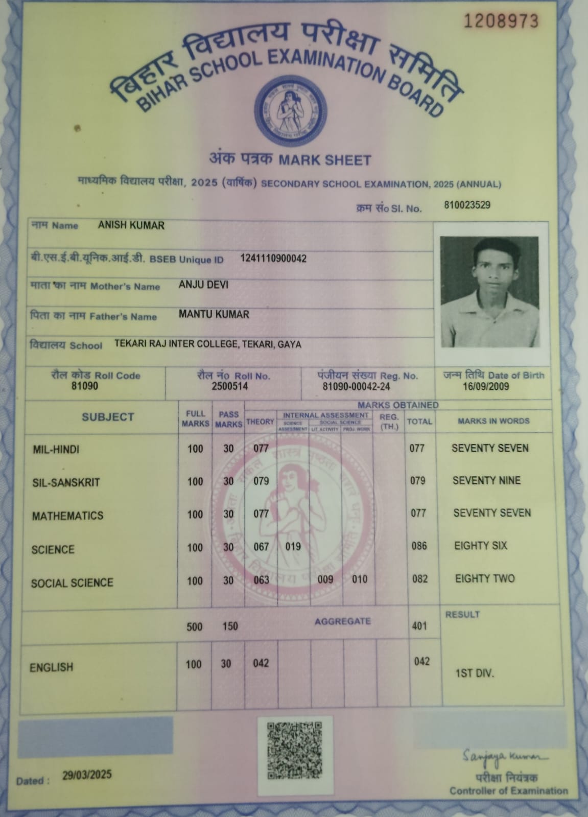 | Exam | Full Marks | Pass Marks | Marks Obtained |