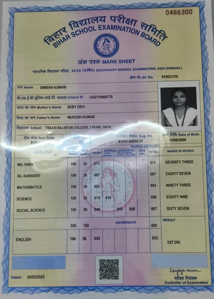 | Exam | Full Marks | Pass Marks | Marks Obtained |