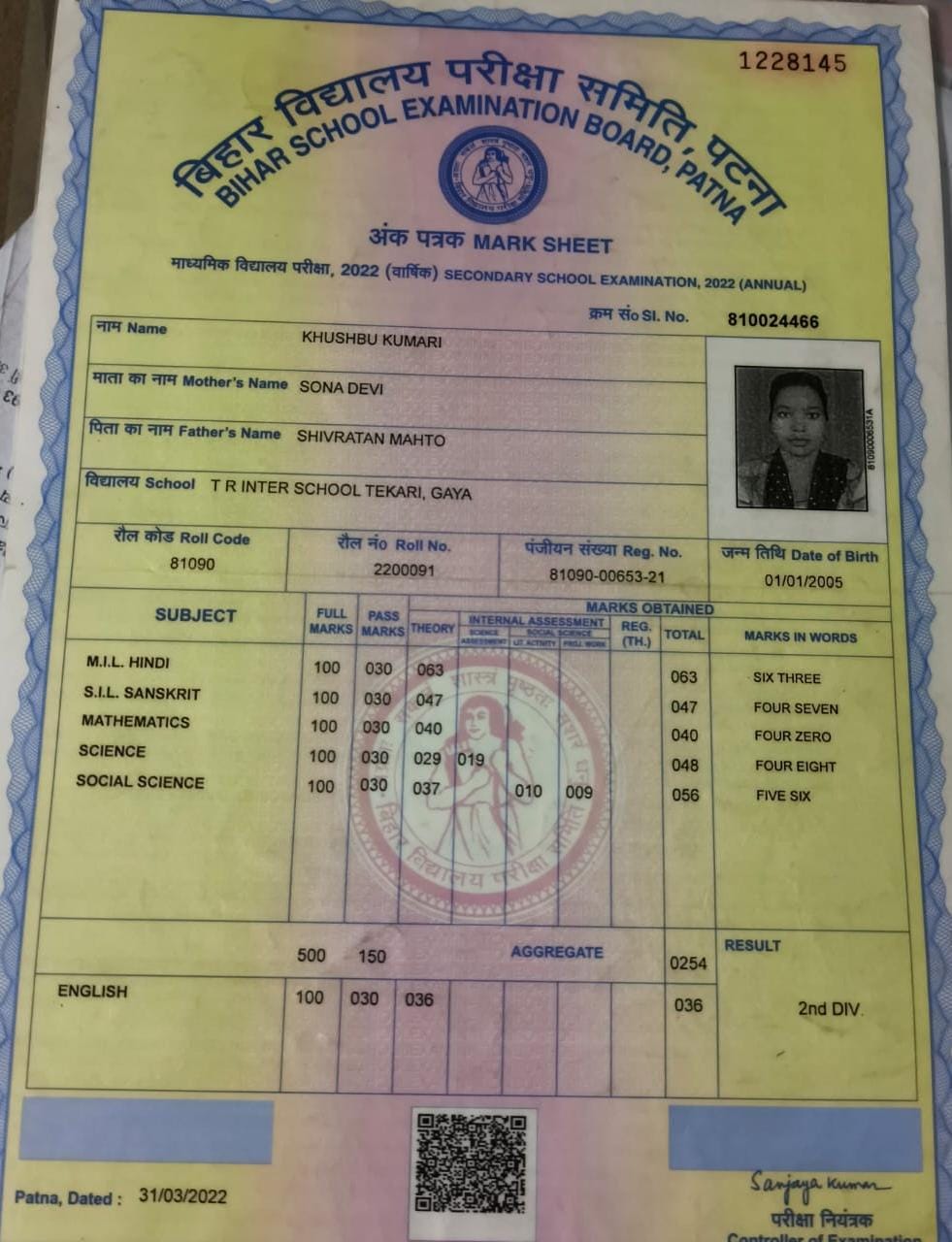 | Exam | Full Marks | Pass Marks | Marks Obtained |