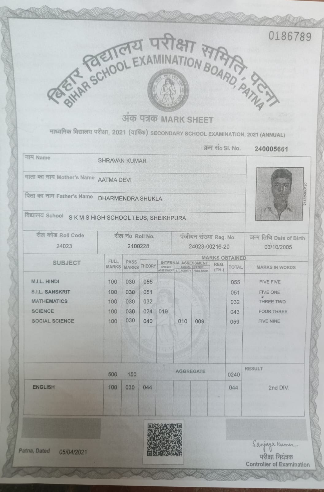 | Exam | Full Marks | Pass Marks | Marks Obtained |