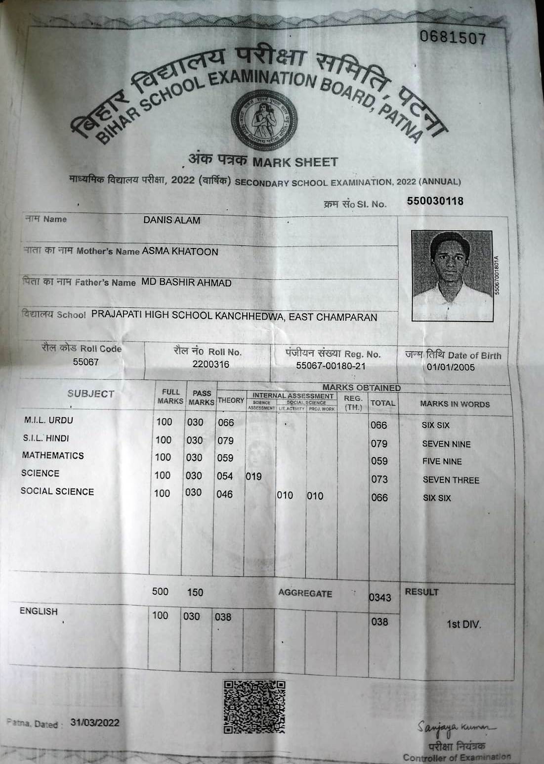 | Exam | Full Marks | Pass Marks | Marks Obtained |