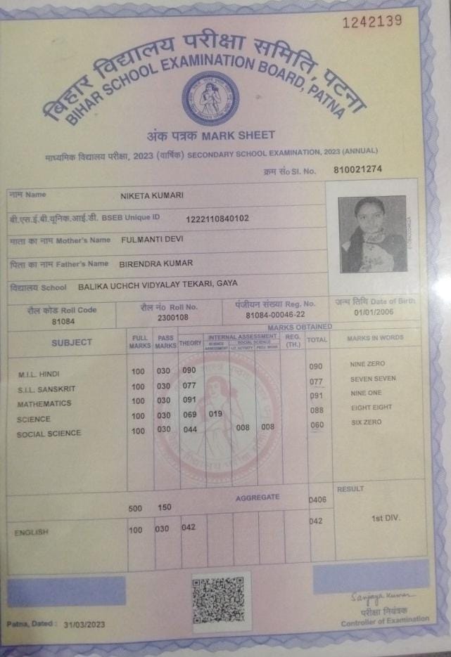 | Exam | Full Marks | Pass Marks | Marks Obtained |