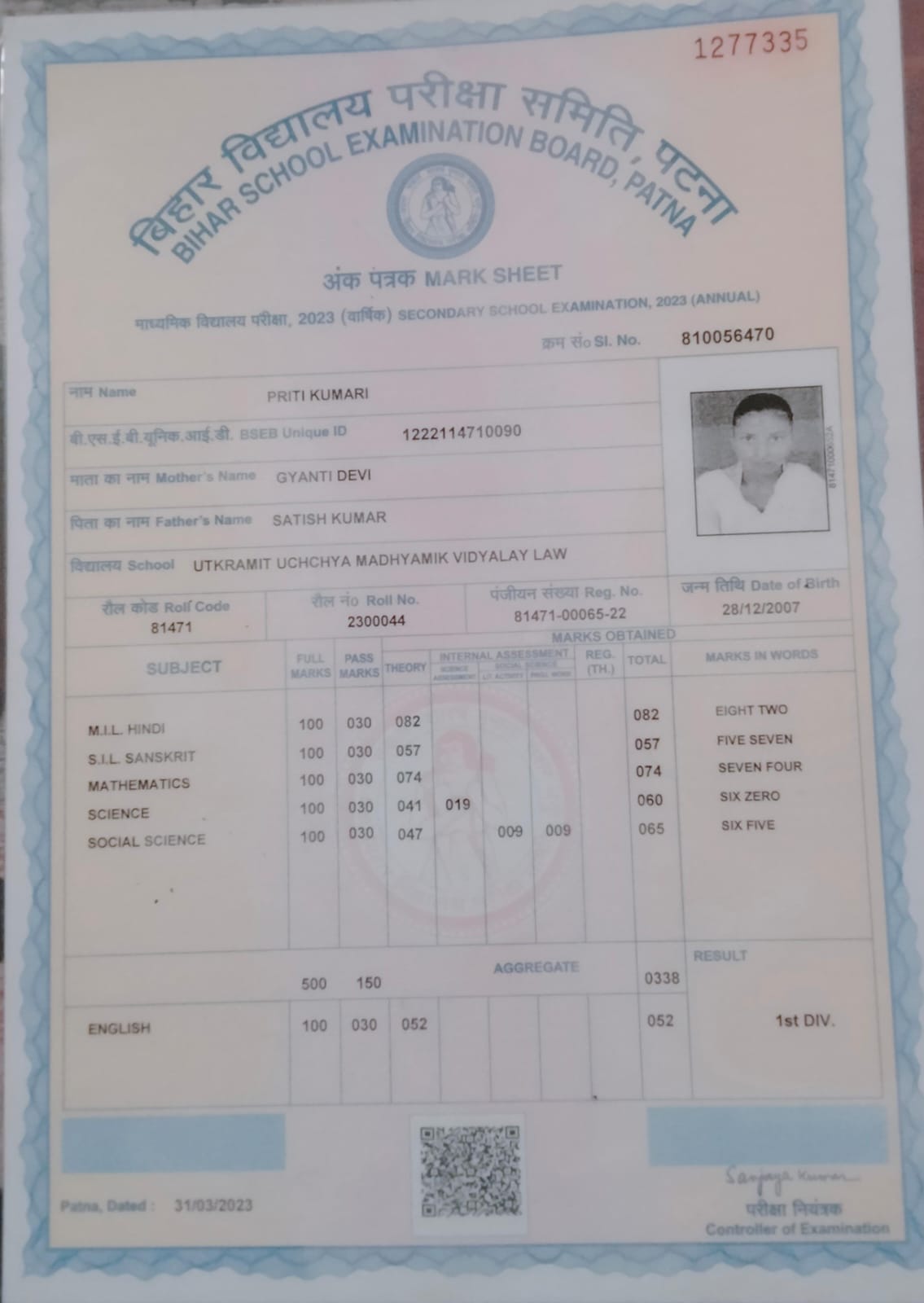 | Exam | Full Marks | Pass Marks | Marks Obtained |