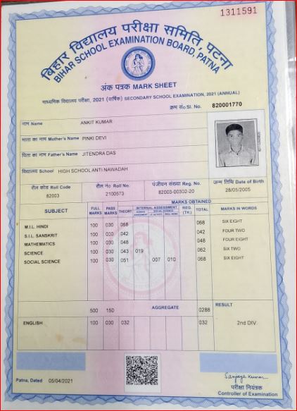 | Exam | Full Marks | Pass Marks | Marks Obtained |